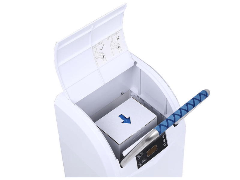 Der Apex 200 passt mit seinen drei eleganten Oberflächen zu jeder Umgebung: Classic White, Sleek Silver und Premium Gold. Das Herzstück ist ein eingebauter intelligenter Infrarotsensor, der die Anwesenheit eines Fußes erkennt und den Mechanismus aktiviert, der jeden Schuh nahtlos mit einer Hülle umhüllt - ganz ohne Hände.