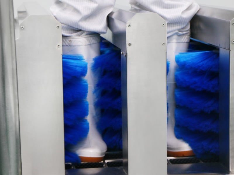 It automatically cleans and disinfects work boots at facility entry points to prevent contamination.